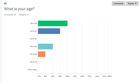 For my opening question I asked people their age, I did this because it would help me understand who is taking my survey and what age group I should be looking at and targeting when creating my advert. In the answers I saw a range between 18-64, the biggest age group to answer my survey was 18-24 this suggests to me that these are the people that would be more interested in nike and therefore I should consider these people when planning my advert.